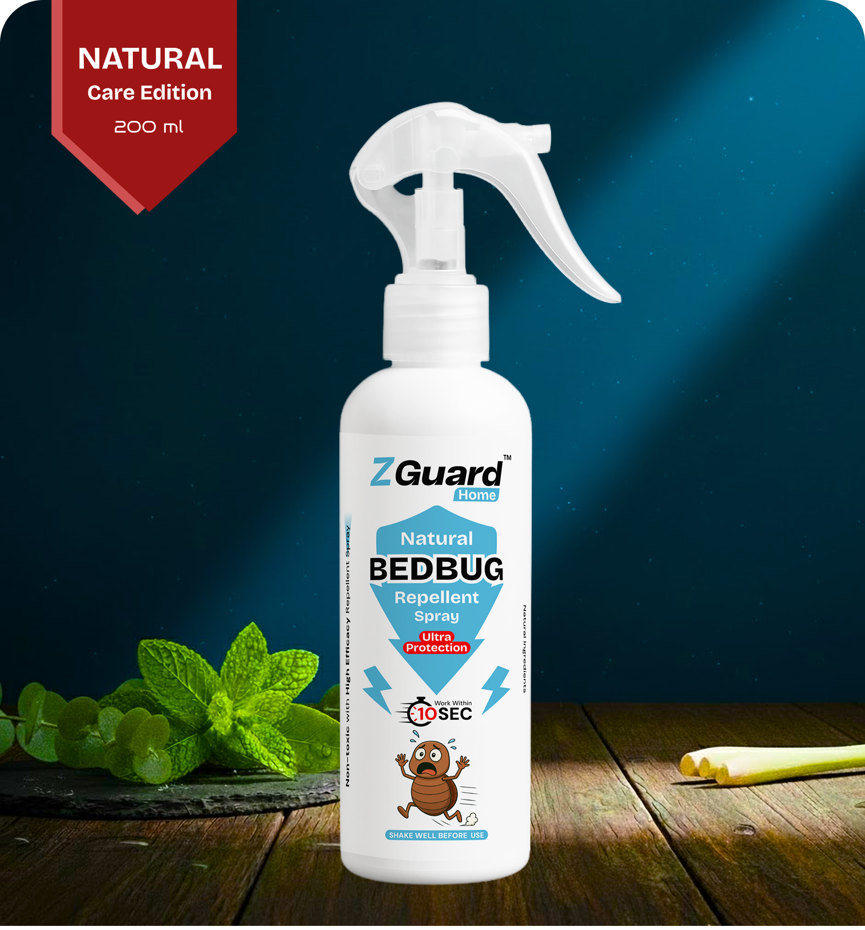 ZGUARD Natural Bed Bug Repellent Spray | Protection from Bed Bugs | Enriched with Lavender, Neem & Tea Tree Oil | Non-Toxic | Fabric-Safe Formula | 200ml