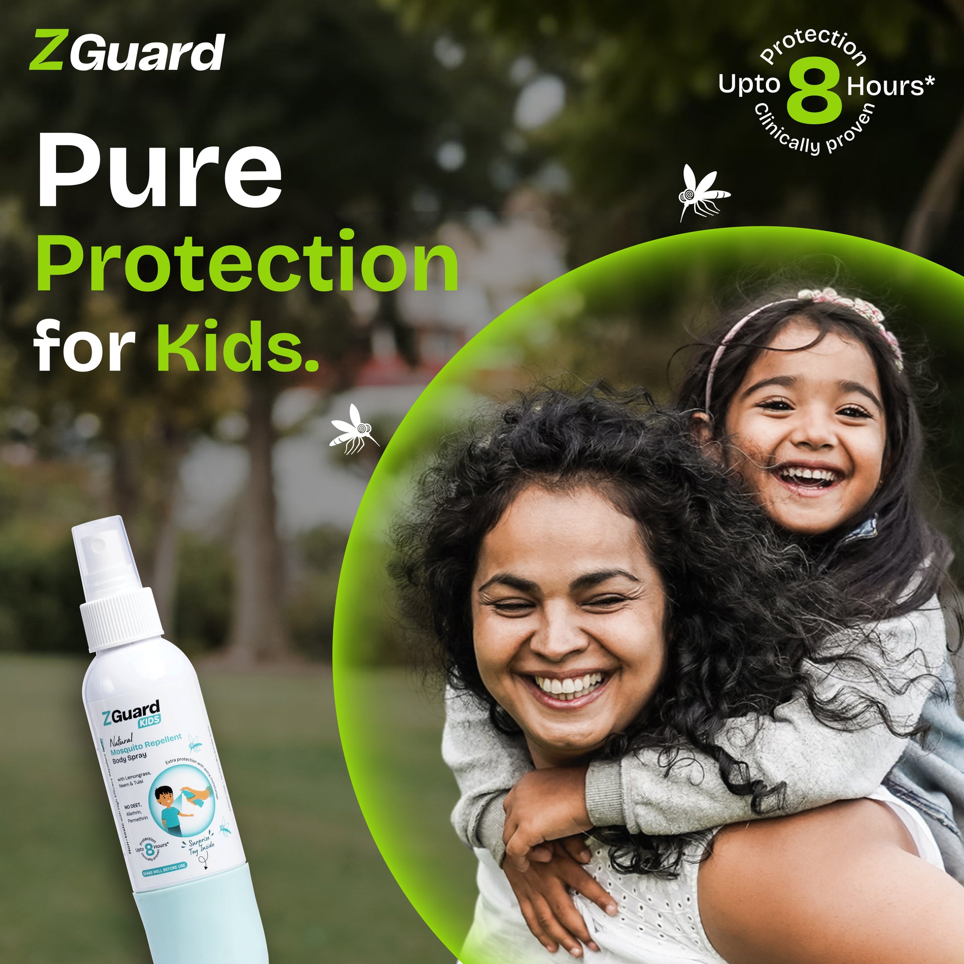 Zguard Natural Mosquito Repellent Body Spray for Adults & Boy Kids | DEET-free,No chemical | 8 hours protection from mosquitos for everyday use| 100 Ml pack of 2 with Suprise Gift for Boy