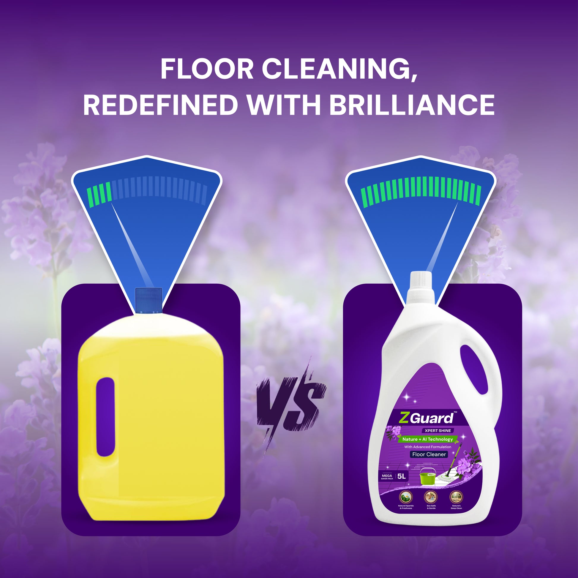 ZGUARD Natural Floor Cleaner Liquid 5L | AI Formula with Xpert Shine & DTN Technology | Kills 99.9% Germs | French Lavender | Multi-Surface Cleaner for Tiles, Marble, Granite | Safe for Kids & Pets